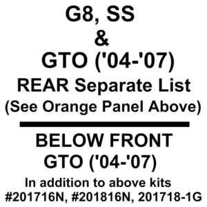 BELOW . . . . PONTIAC G8 / SS ’07-’17 SHOWING REAR MULTI LINK